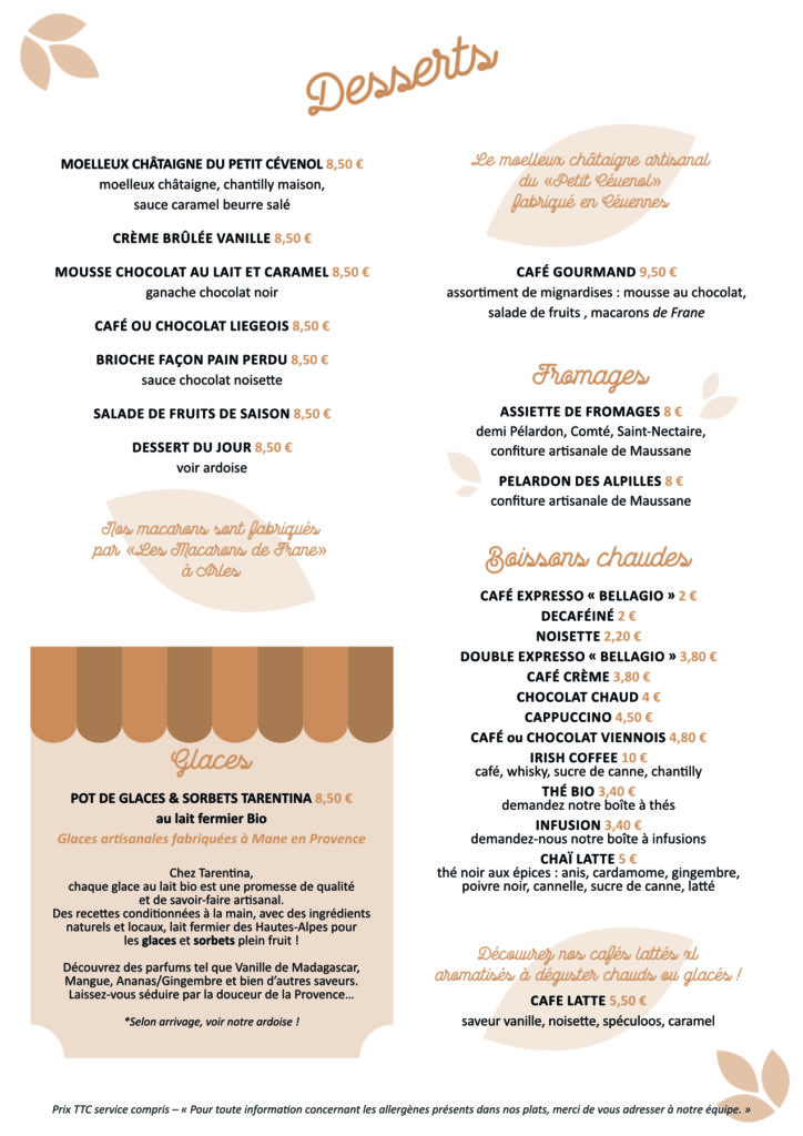 Notre cuisine est simple et savoureuse, à des prix abordables, traditionnelle et « fait maison » élaborée avec des produits frais et locaux.